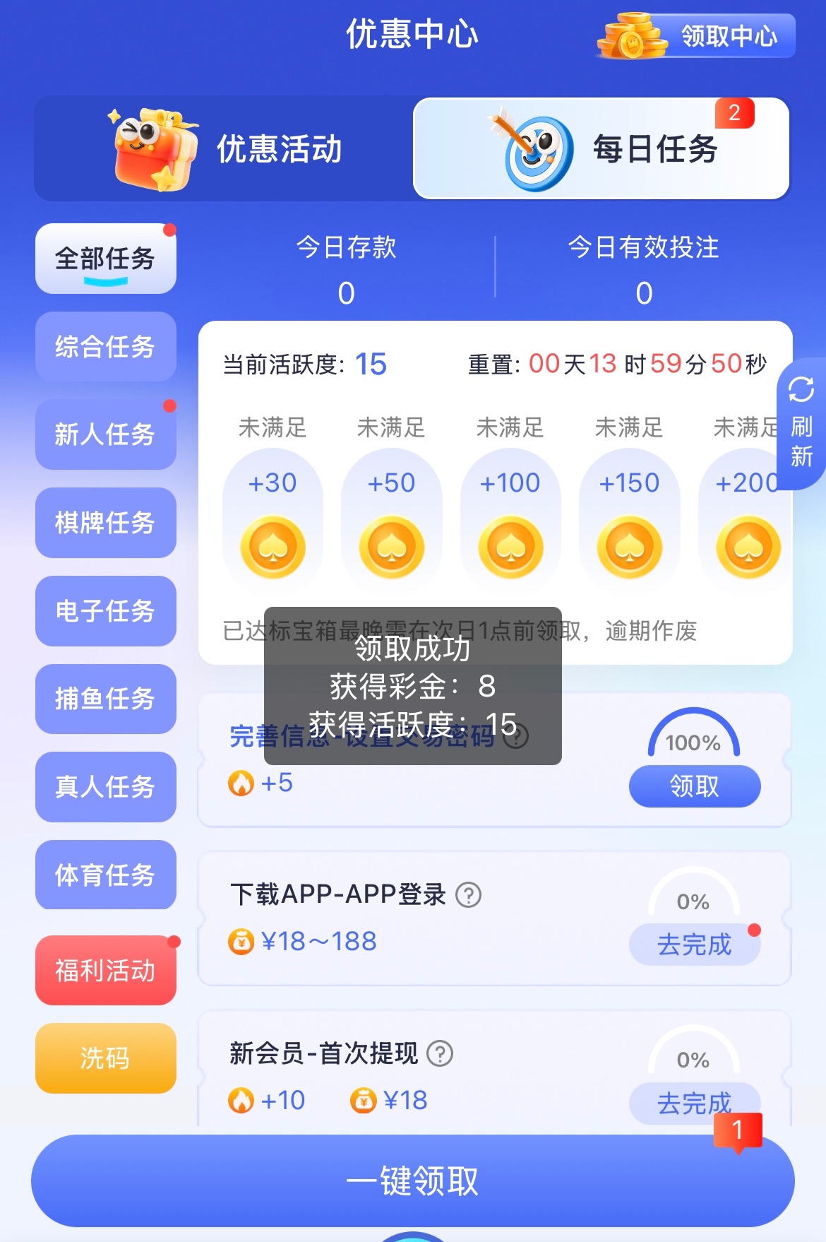 注册完善信息 优惠任务领取