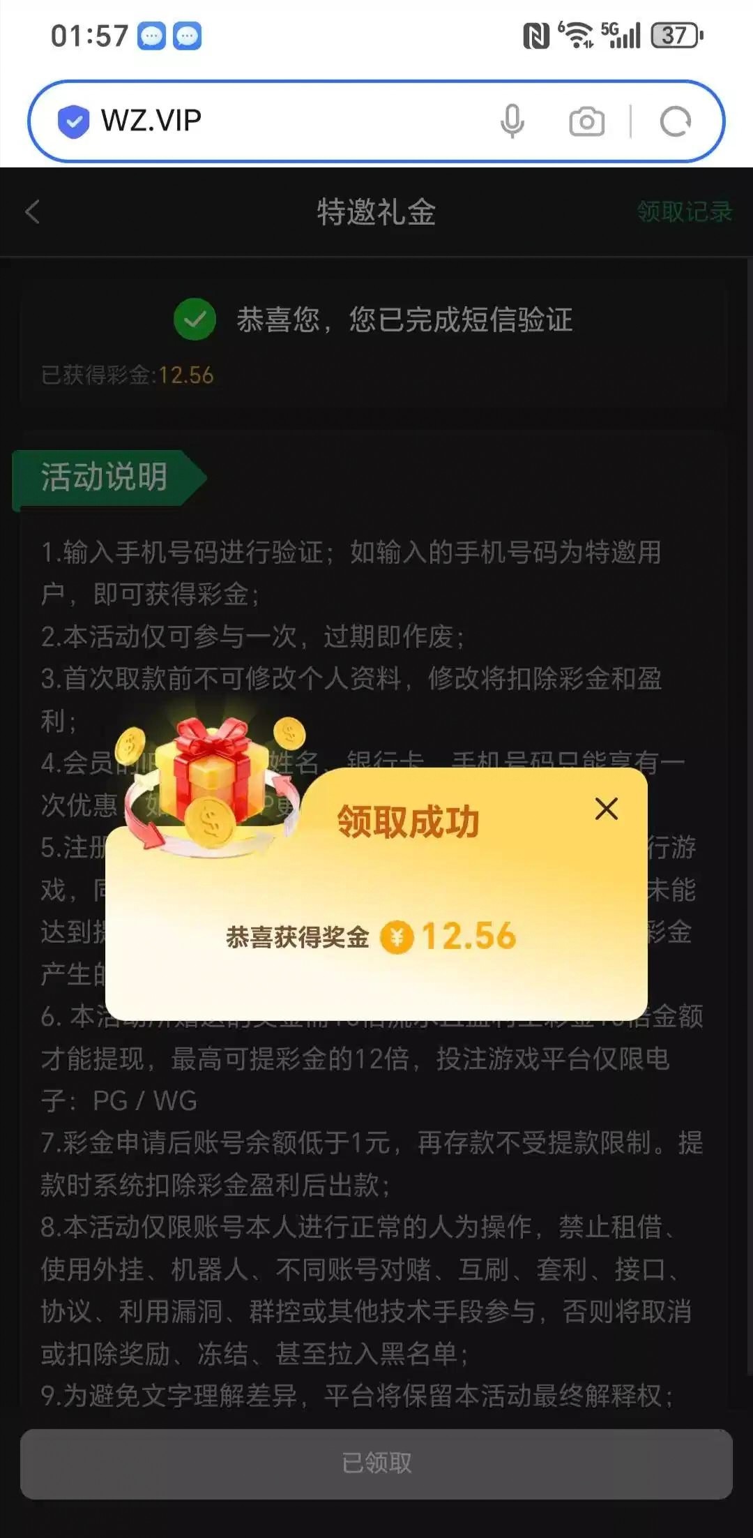 短信网址55571.app 图片有官方网址!特邀没领到也别骂!没打出来出款自测!禁止充值!