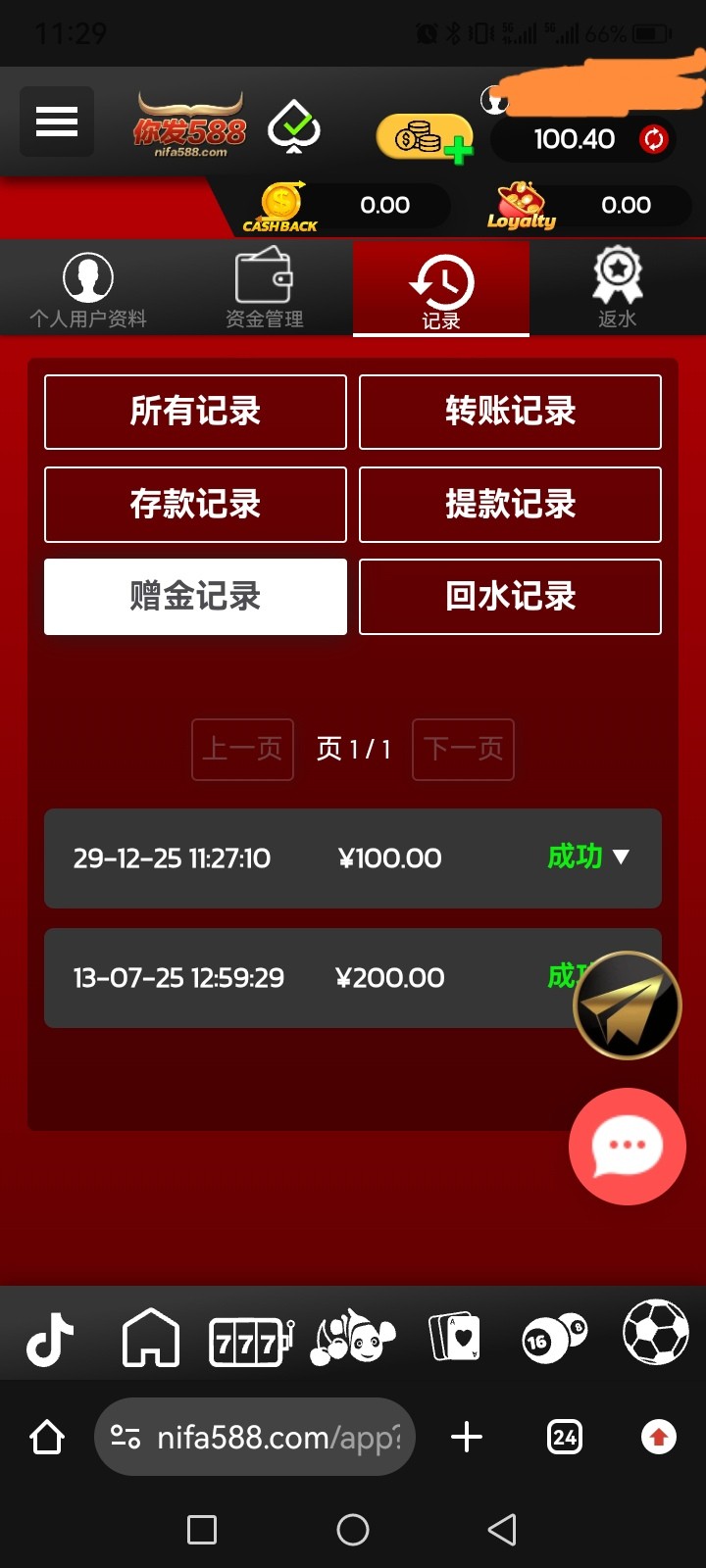 nifa588.com 以前送200不限制游戏,打出来了,这次送的100限制游戏没打出来